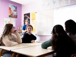 À l’instar de SHADI, ÉOLINE, SATURNZ - toutes les deux lauréates de Tremplin#77 – et Annaëlle, accompagnent aussi les collégiens. Cette année, le thème des ateliers porte sur l’amour et l’amitié. Les collégiens de Gretz-Armainvilliers ont écrit un texte sur l’évolution de l’amitié au cours du temps. « En atelier, on travaille d’abord sur l’écriture des paroles, puis je prépare chez moi plusieurs mélodies au piano pour qu’ils choisissent en classe », explique SHADI qui accompagne les élèves du collège Hutinel (Gretz-Armainvilliers).