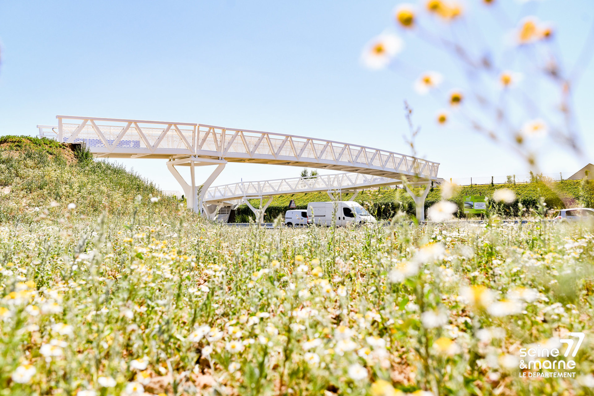 « Merci aux équipes de la Direction des Routes, aux entreprises, au maître d’œuvre et à l’architecte pour leur professionnalisme et la qualité de la coordination », a déclaré Jean-François Parigi. Cette passerelle, réalisée par le cabinet d’architecte Spielman & Chirino Architecture, incarne l’innovation technique et le respect de l’environnement en faveur des mobilités douces.
