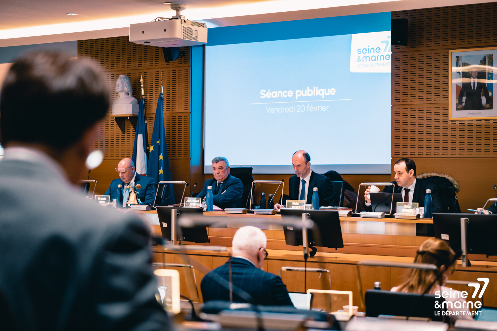 Jean-François Parigi (au centre), préside le Conseil départemental de Seine-et-Marne © Département de Seine-et-Marne / Thomas Gaillard