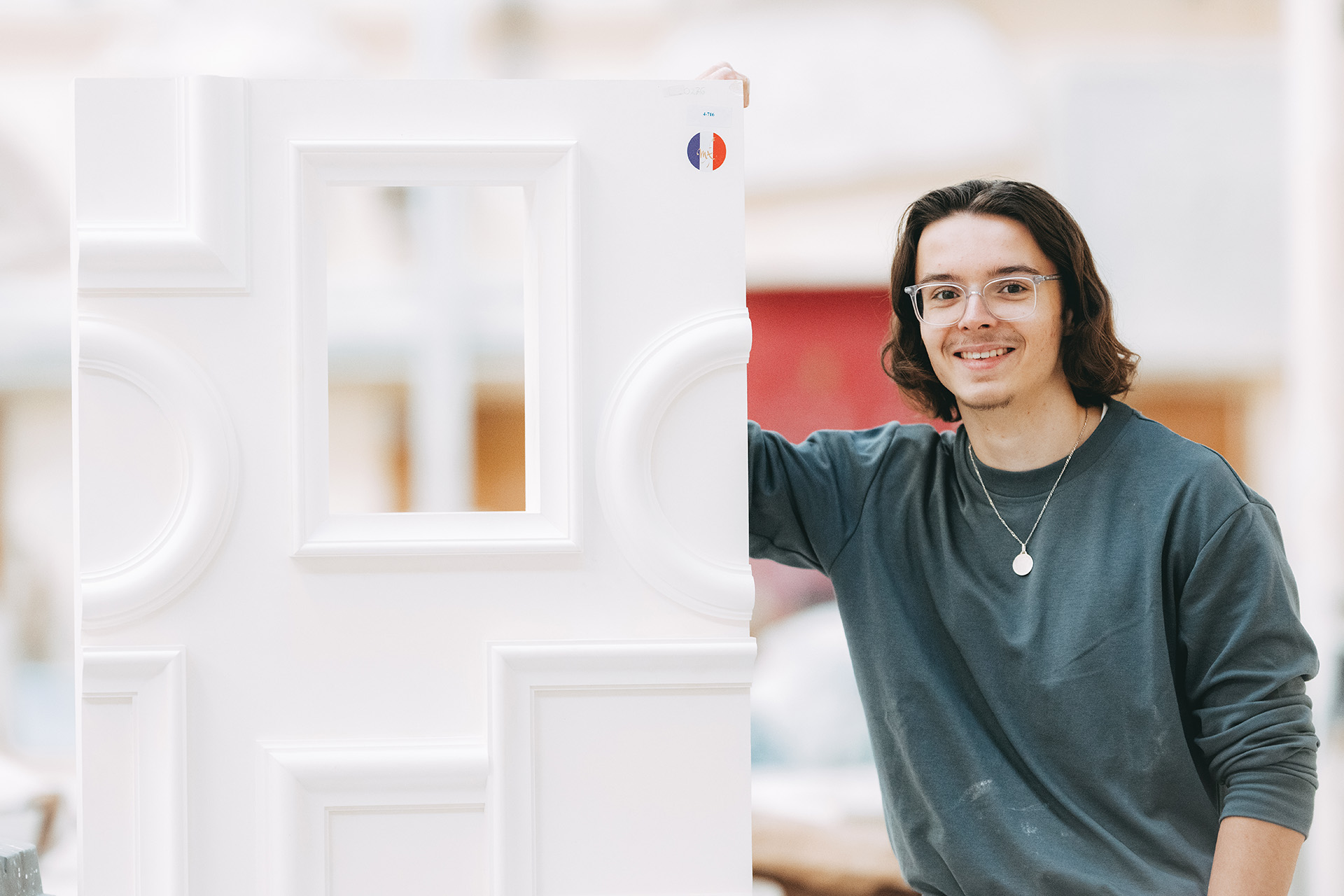Son parcours n’était pourtant pas tout tracé. Après un brevet et un début de seconde générale peu concluant, Thibault Vercasson découvre par hasard le métier de staffeur-ornemaniste lors d’un mini-stage au lycée du Gué à Tresmes, à Congis-sur-Thérouanne : « J’ai fait ma première réalisation, et je me suis dit immédiatement : c’est ça que je veux faire. » Depuis, il est resté fidèle à l’établissement. Après un CAP, il prépare aujourd’hui un Brevet des métiers d’art (BMA), qui mêle des matières générales – comme l’histoire de l’art – et des cours techniques : atelier, technologie professionnelle...