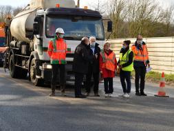 À la suite des désordres de la couche de roulement, des travaux sont engagés pour réparer la route départementale RD84. Il s’agit d’une intervention urgente réalisée par le bailleur, l’entreprise Jean Lefebvre.